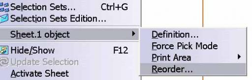 El cambio de nombre lo haces en el arbol, a tu izquierda, haciendo botón derecho; propiedades. Para ordenar las hojas me fijo mañana en el trabajo porque no tengo catia cerca, pero creo que lo podés hacer con el menú del botón derecho en el árbol.